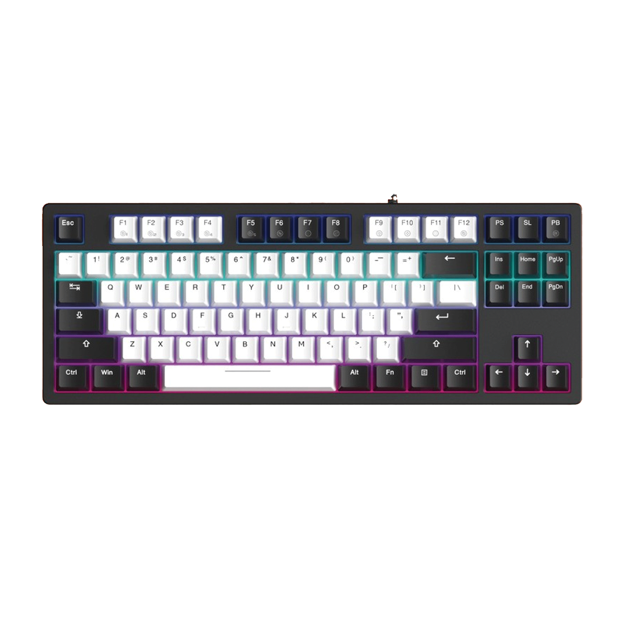 Bàn phím cơ Dare-U EK87 V2 | White Black được trang bị hệ thống đèn nền RGB đa sắc, cho phép người dùng tùy chỉnh màu sắc theo ý thích, tạo nên hiệu ứng ánh sáng đẹp mắt, góp phần nâng cao trải nghiệm sử dụng. Hệ thống đèn nền RGB được thiết kế thông minh, chia theo từng hàng phím, 2 dải LED RGB bên hông, tạo nên hiệu ứng ánh sáng ấn tượng, phù hợp với nhiều phong cách setup khác nhau.