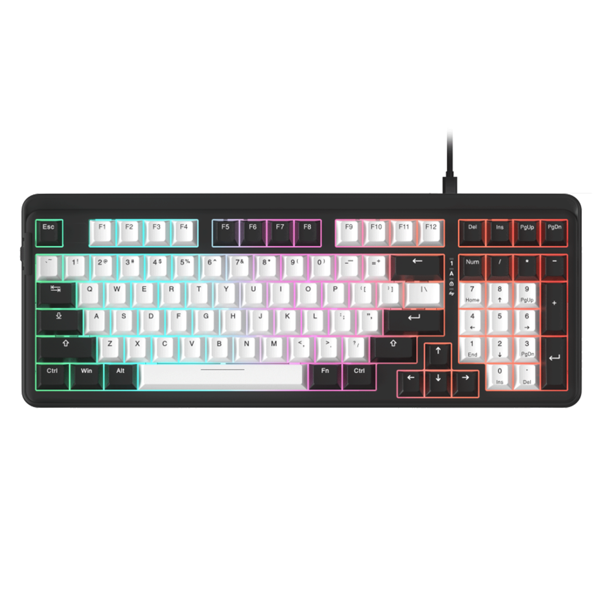Bàn phím cơ Dare-U EK98 White Black được trang bị hệ thống đèn nền Rainbow RGB, cho phép người dùng tùy chỉnh màu sắc theo ý thích, tạo nên hiệu ứng ánh sáng đẹp mắt, góp phần nâng cao trải nghiệm sử dụng. Hệ thống đèn nền RGB được thiết kế thông minh, cho phép người dùng tùy chỉnh màu sắc và hiệu ứng theo ý thích, tạo nên không gian làm việc, chơi game lung linh, thu hút.